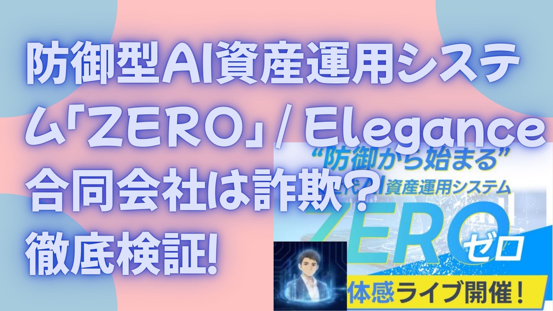 「防御型AI資産運用システム「ZERO」/ Elegance合同会社」について調査を進めた結果を発表します。
